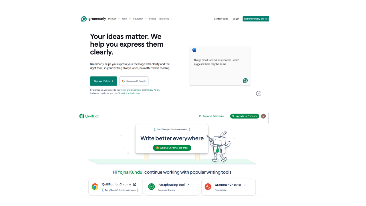 These are not ad-generation tools, but they help refine and clean up the copy you’ve created. Grammarly ensures your grammar and sentence flow are clear. Quillbot helps rephrase sentences or adjust tone. They’re useful when you want the final ad copy to feel polished and easy to understand.