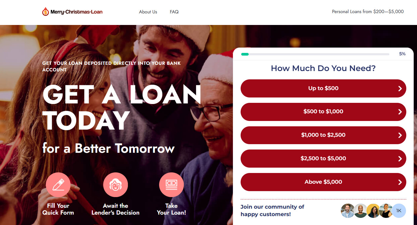 Merry-Christmas-Loan is a U.S.-based online platform that connects people with trusted lenders offering quick personal loans between $500 and $5,000. The process is simple: users fill out a short online form, get matched with a lender, and can receive funds within 24 hours of approval. It’s designed for those who need extra cash during the holiday rush, for gifts, travel, or last-minute expenses. The platform itself isn’t a lender but helps users find the right loan safely and quickly.