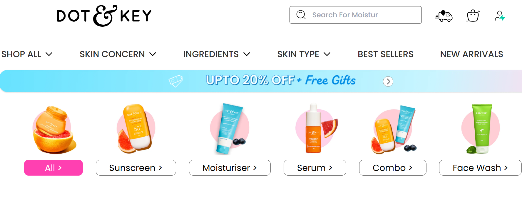 Dot & Key is known for skincare products built around active ingredients and targeted skin concerns such as dullness, tanning, acne, and dehydration. Its range includes serums, sunscreens, moisturisers, and cleansers that are widely popular among younger skincare buyers. The brand has introduced a limited-time women’s day offer aimed at increasing order value while giving shoppers additional incentives: