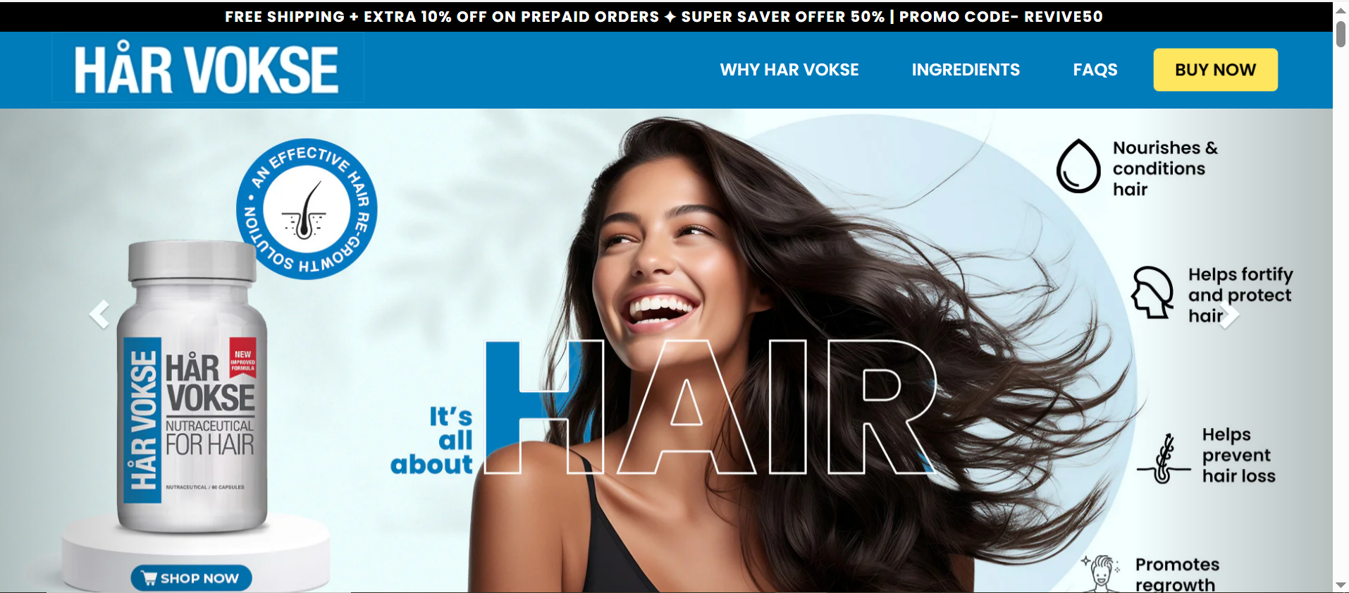 HarVokse is a dual-action hair restoration supplement developed by Norwegian researchers, designed to both prevent hair loss and stimulate new hair growth. Its formula is built around marine collagen, amino acids, and natural plant extracts like amla and rosemary, which nourish the scalp, strengthen hair follicles, and promote thicker, shinier hair. It’s suitable for all hair types and works from within to improve hair health at the root level.