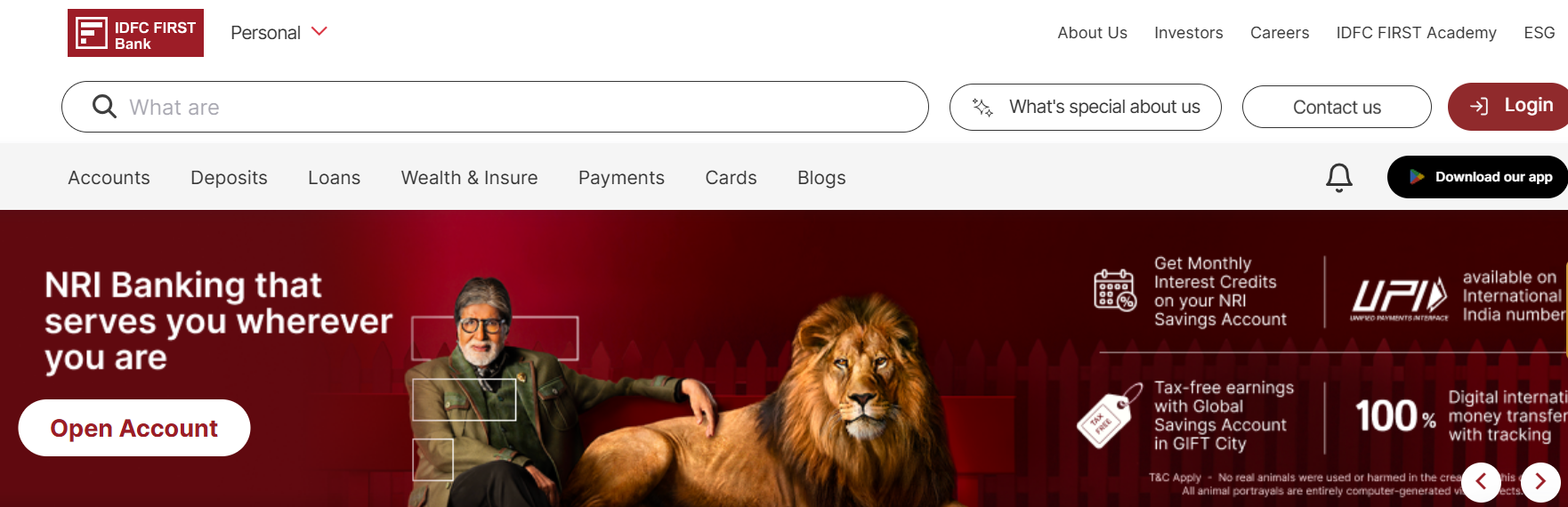 IDFC FIRST Bank is a private bank in India. The bank allows users to open a savings account with zero charges on 30+ services, apply for a personal loan up to ₹10 lakh starting at 9.99% p.a. Also, they can invest in fixed deposits, earning up to 7.00% p.a. For affiliates, this mix of offers makes it easier to match different user intents.