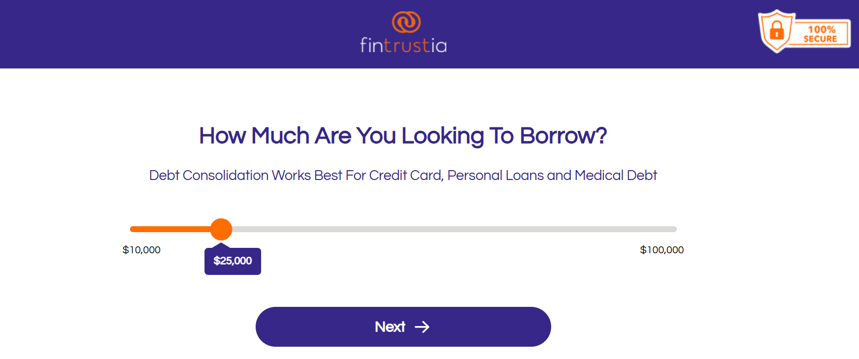 Fintrusti is a debt assistance website in the US where users submit basic details to check eligibility for debt relief options covering unsecured debt amounts up to $100,000. The flow is simple and works well for users who are still exploring solutions.