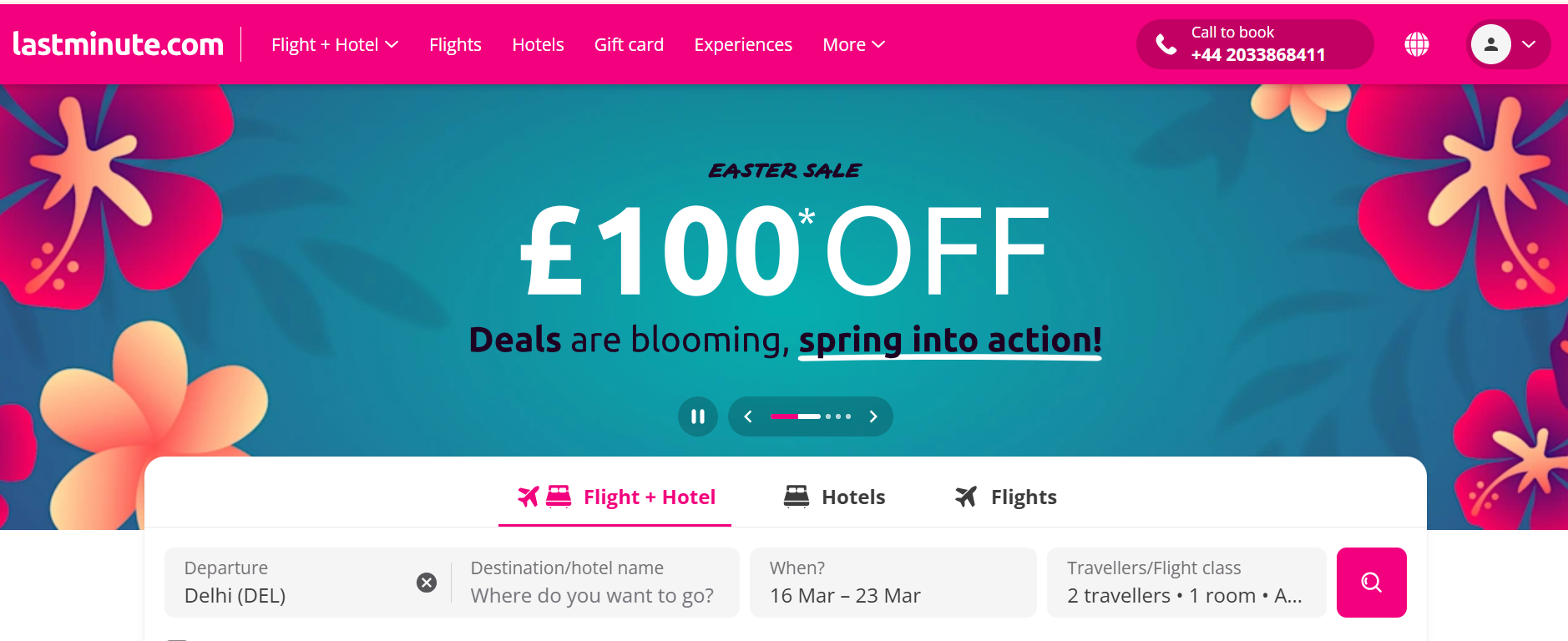 Lastminute.com is a travel platform that helps users book flights, hotels, holiday packages, and experiences. The platform is especially popular among travellers looking for last-minute deals and seasonal offers.