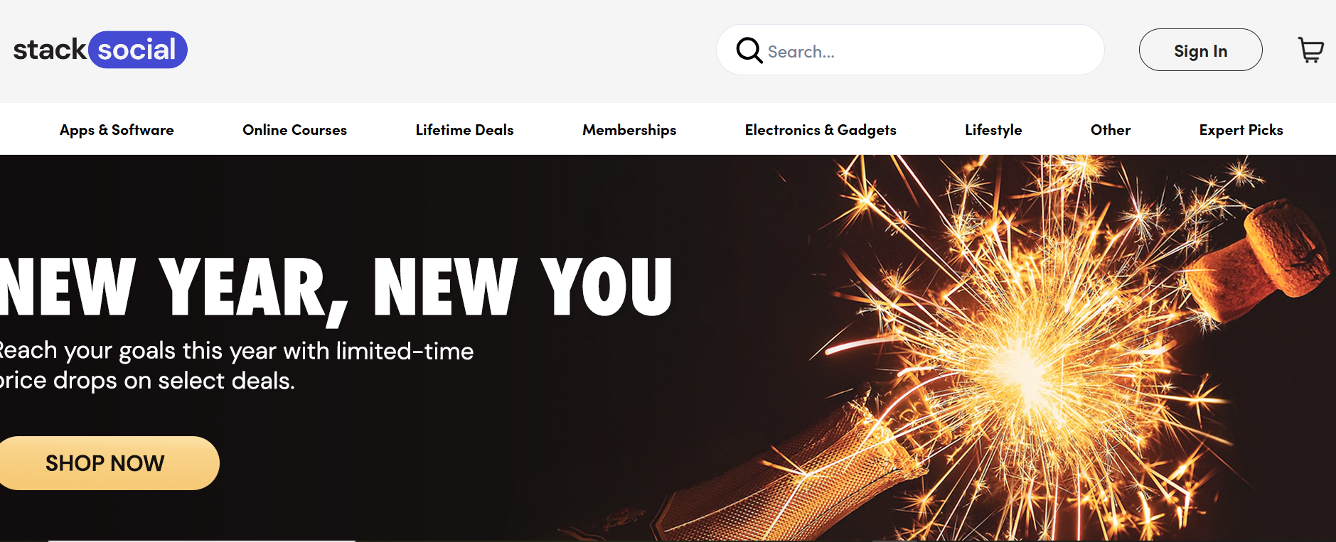 StackSocial is an online deals marketplace that features curated discounts on software, gadgets, subscriptions, and more. Current offers include Super Duolingo for $40 for one year, 15% off on a first purchase, and up to 97% off on select plans, which makes the platform easy to position for deal-seeking users in the US market.