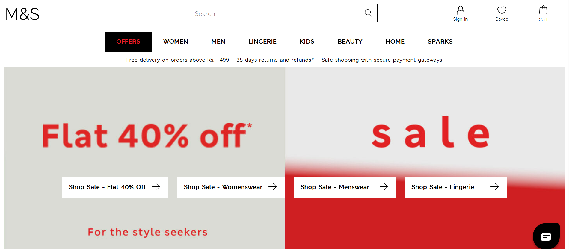 Marks & Spencer is an apparel and lifestyle brand offering a wide range of premium clothing and lifestyle products. Currently, the brand is offering a flat 40% off selected styles and free delivery on orders above ₹1499. It’s worth promoting for affiliates as shoppers don’t need much convincing; they’re already adding to their carts.