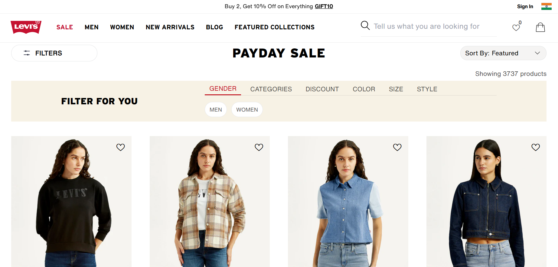 Levi’s is a timeless name in fashion, known for its iconic denim and everyday essentials that blend comfort with style. With ongoing offers like a minimum of 30% off, an extra 5% on prepaid orders, and an additional 12% off on carts above ₹3799, it continues to drive strong shopper intent across India.
