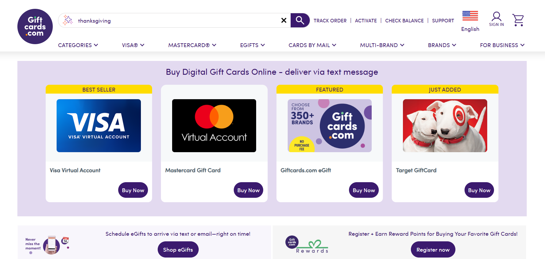 GiftCards.com is a leading online platform where you can buy both digital and physical gift cards from over 350 popular brands. It offers Visa and Mastercard gift cards, multi-brand cards, and retailer favorites like Target, Uber, Sephora, and Netflix.